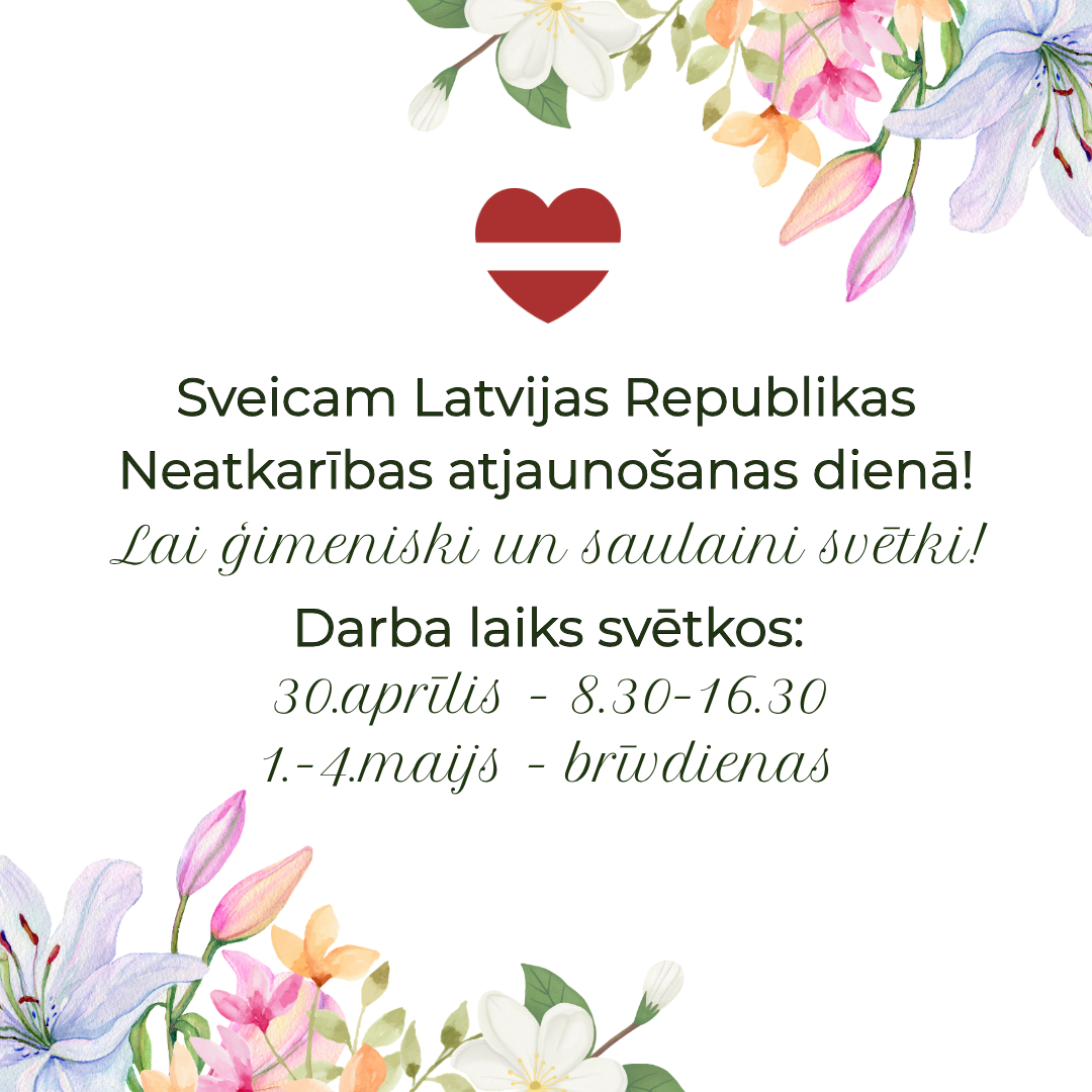 Darba laiks: P.-Pk.: 8:30 – 17:30 / Sest., Sv.: brīvdiena